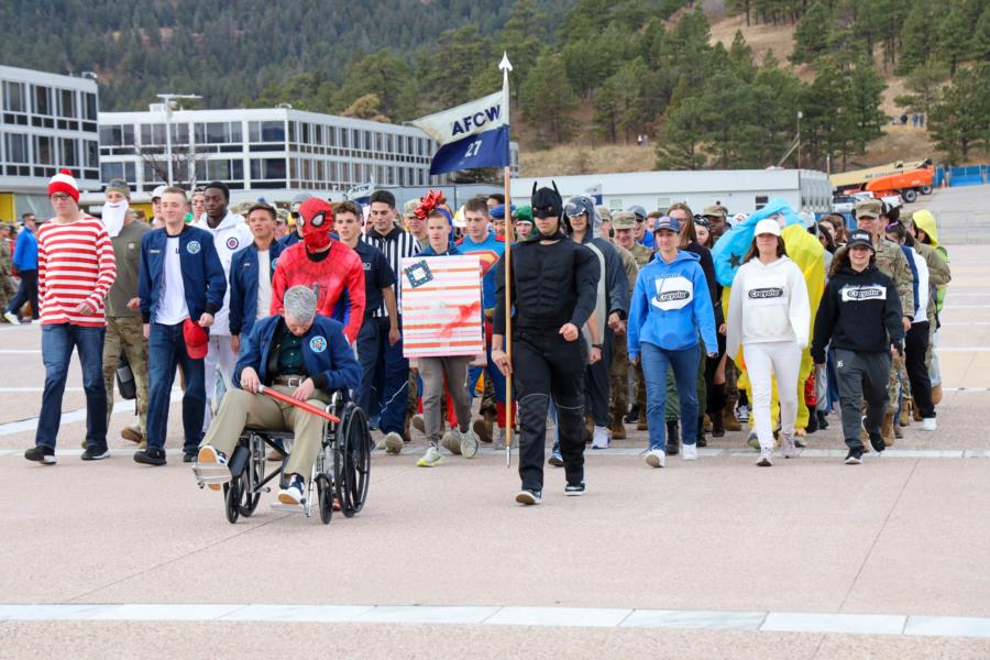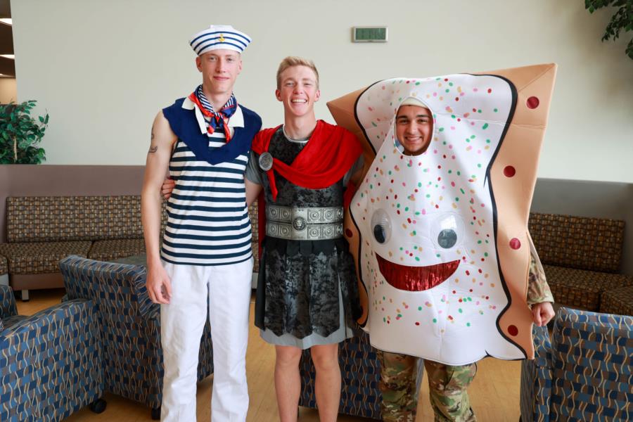 For Halloween we have NMF (Noon Meal Formation) and cadets in costume in the Library! The Web Team was all smiles as we enjoyed taking photos of the Ghouls and Gobblins!